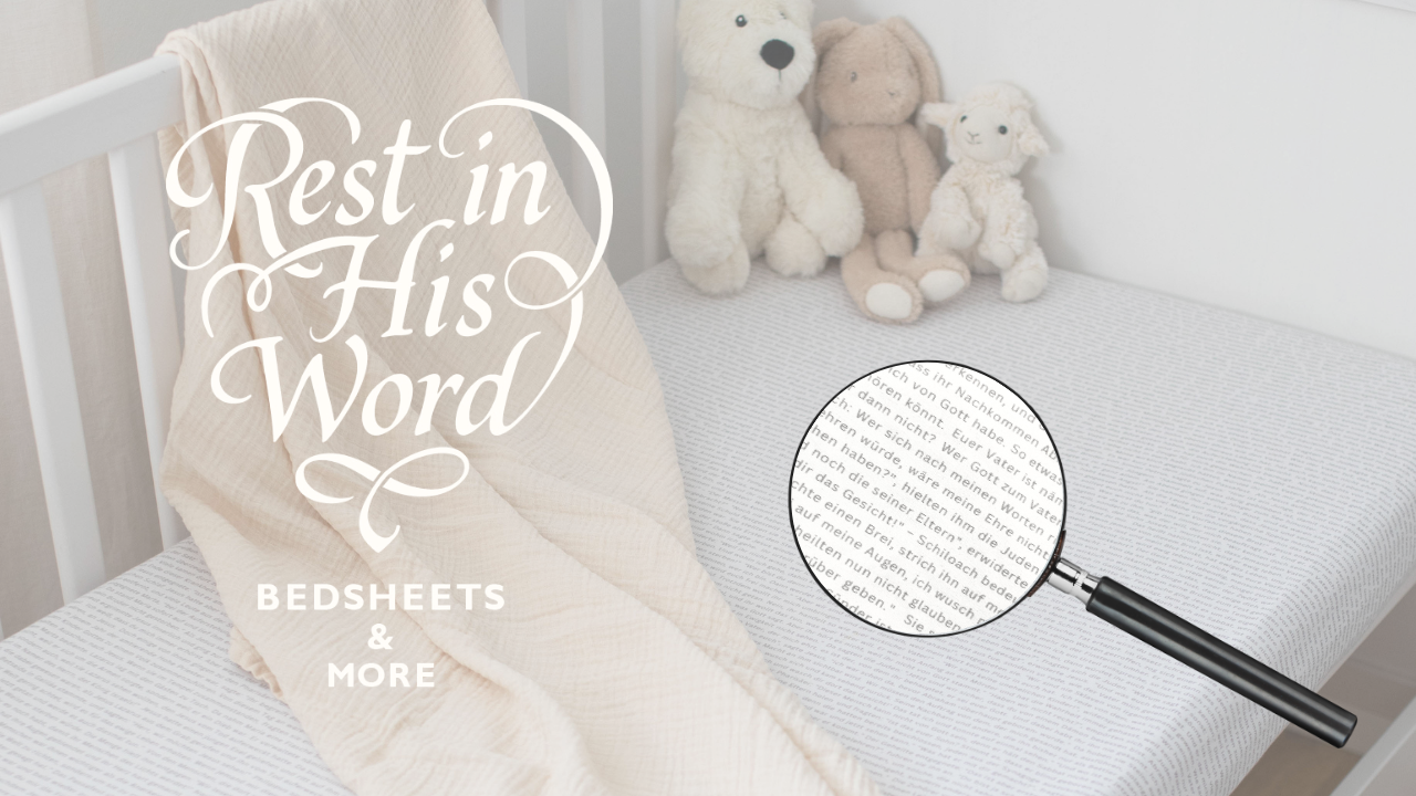 Unsere Laken tragen biblische Wahrheiten, die Frieden, Schutz und geistliche Klarheit in dein Zuhause bringen.